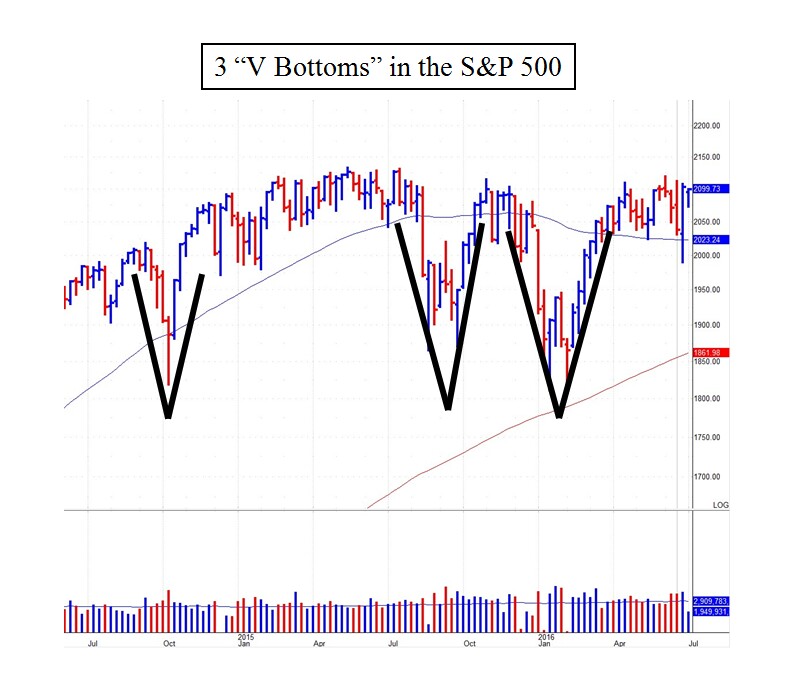 In the past two years, the S&P 500 has essentially gone nowhere, frustrating the majority of investors. We have seen three “V bottoms” (shown in the chart below) where the market shoots down about -10% (resulting in losses), only to grind right back up as if nothing happened. Also, beneath the surface, many sectors corrected significantly during the past two years: Energy -50%, Biotech -40%, and Small Caps -25%.