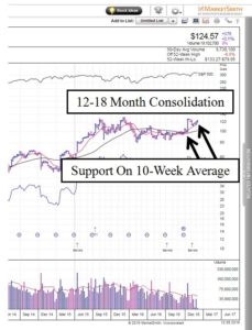 1) Technicals – The chart is showing very strong technicals on its Weekly chart (see below). Since their last earnings report, the stock has found great support near its 10-week moving average; showing that big institutions continue to accumulate shares. It is also building a first stage base and trying to move out of a 12-18 month consolidation.