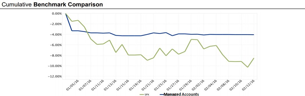 Example 2: In the beginning of 2016, I came into the year 50% invested for my clients. I got stopped out of my remaining positions early in the year and was down -4% (see chart below). I wrote an article for Yahoo Finance saying that I moved my clients to 100% cash and then the market had a quick -11% correction. The number of emails and phone calls I got from people freaking out was insane! People told me they couldn’t sleep, they couldn’t eat, and they lost way too much money in a short period of a time. These investors were perfectly happy when the market was going up but borderline suicidal when the market dropped quickly. This is an example where everyone wishes they had an active strategy to avoid some of the market’s decline.