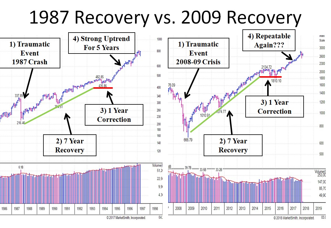 Bottom line: We are about to head into what I believe will be year three of a possible five year Bull Market. I’ve been writing about this for a while now and presented the 1987-2000 analogy in the chart above. We are not in a nine year Bull Market. The new Bull Market started in July 2016 after Brexit and can continue to accelerate for a while. Here’s the catch: It won’t be easy. There will be corrections, shakeouts and pullbacks along the way, similar to the one we are having now. Many of these corrections will be sharp and very convincing that the Bull Market is over. The biggest challenge for investors will be sticking to your investment process and having conviction during the corrections. While many have called for a top, I’m one of the few saying this Bull Market still has a long way to go. It might even accelerate and surprise to the upside if you have some patience.