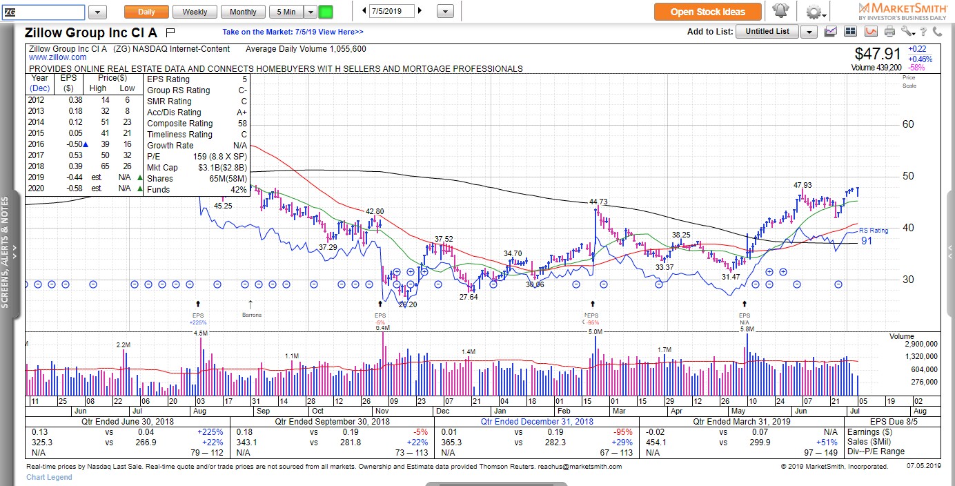 2) Zillow is an online real estate company (Class C shares are symbol: Z, Class A shares are: ZG). One of their original founders returned as CEO earlier this year and the company is venturing into many new verticals. (QUICK NOTE: With all these ideas, if you’re interested in taking a position, I encourage you to put in some work and do your own research). Its accelerating revenue growth, bullish option activity and very sharp insider buying are some of the reasons I like this stock.