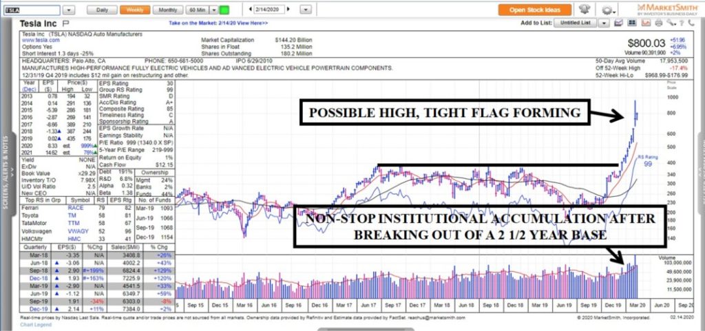 3) In my 21 years on Wall Street, I don’t remember a stock being hated so much as Tesla. Its short interest continues to be very high and the number of people cheering for it to go down is astonishing. For example, on 2/5/20 when the stock was dropping, I noticed many people cheering for it to tank as if they were watching a sporting event. What’s even more pathetic is many of these people don’t even have a position in the stock. I’ve never understood the concept of hating a stock for going up and making people money. It’s almost as if these people hate success. Since the market tends to fool the majority, a move higher in the stock would continue to fool the majority of people who hate the stock.